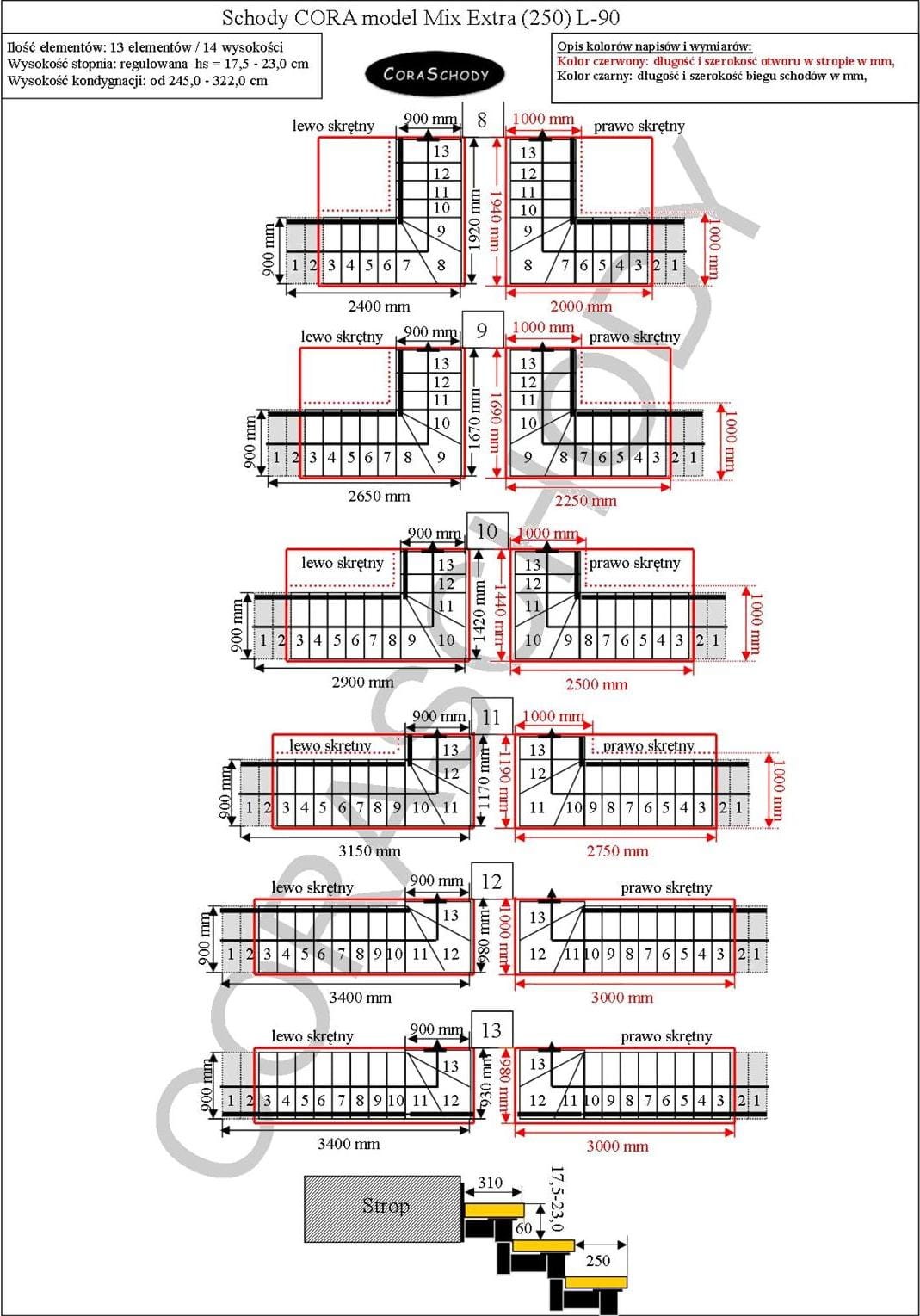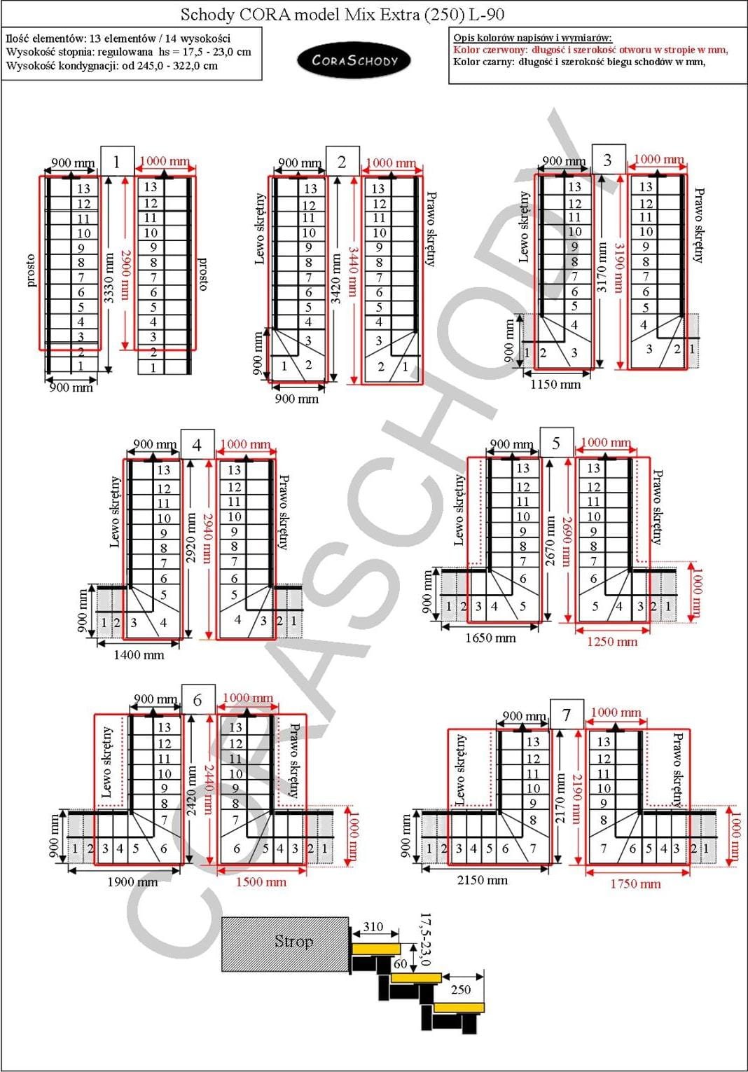 Die Treppe Mix Extra 03 P kann in eines von 26 vom Hersteller vorgestellten Systemen eingebaut werden. Die Treppe ist in ihrer ursprünglichen Form L-90 schwenkbar, links oder rechts, sowie in einer ungewöhnlichen geraden Ausführung – in diesem Fall sollte dem Formular ein entsprechender Hinweis hinzugefügt werden.
