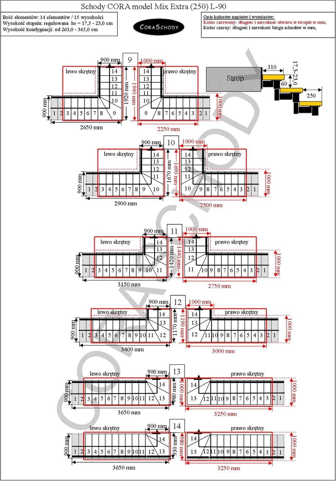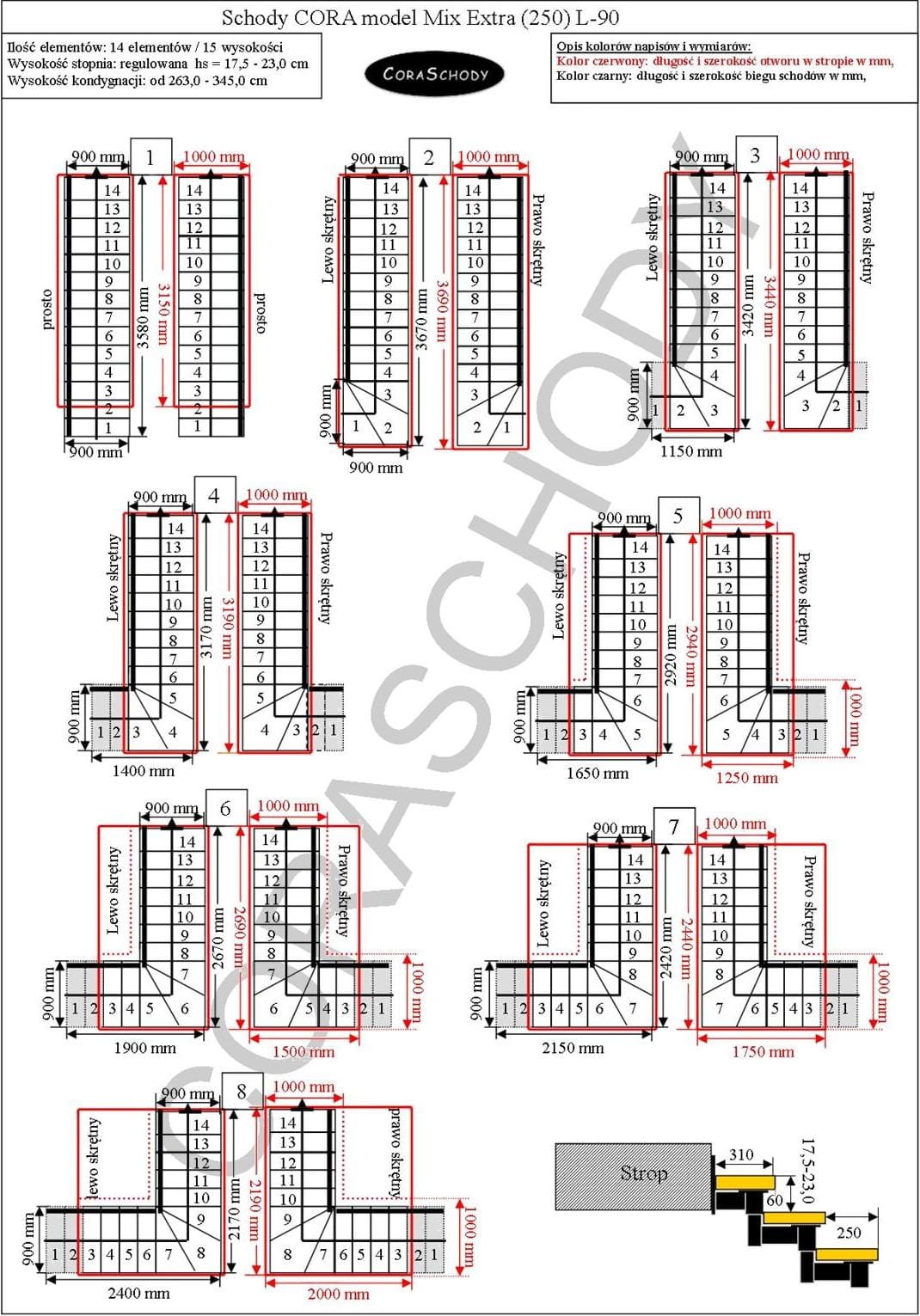 Die Treppe Mix Extra 03 P kann in eines von 28 vom Hersteller vorgestellten Systemen eingebaut werden. Die Treppe ist in ihrer ursprünglichen Form L-90 schwenkbar, links oder rechts, sowie in einer ungewöhnlichen geraden Ausführung – in diesem Fall sollte dem Formular ein entsprechender Hinweis hinzugefügt werden.