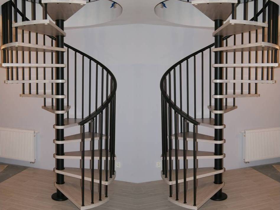 Die angebotenen Wendeltreppen passen in zwei Arten von Öffnungen in der Decke und haben abhängig davon unterschiedliche Podeste. Dreieckige Podeste passen in runde Öffnungen. Dreieckige und trapezförmige Plattformen sind auf quadratische Öffnungen abgestimmt. Die Treppe in diesem Modell hat eine rechte und linke Behandlung. Je nach Konzept sind sie universell montierbar.