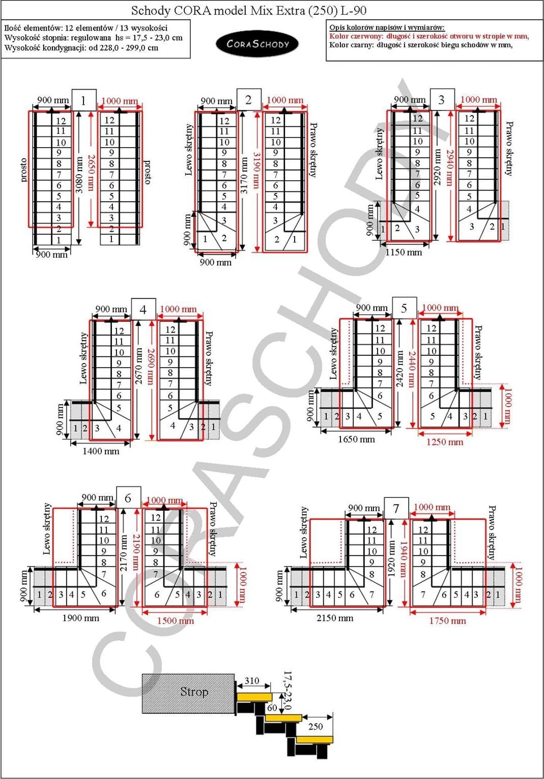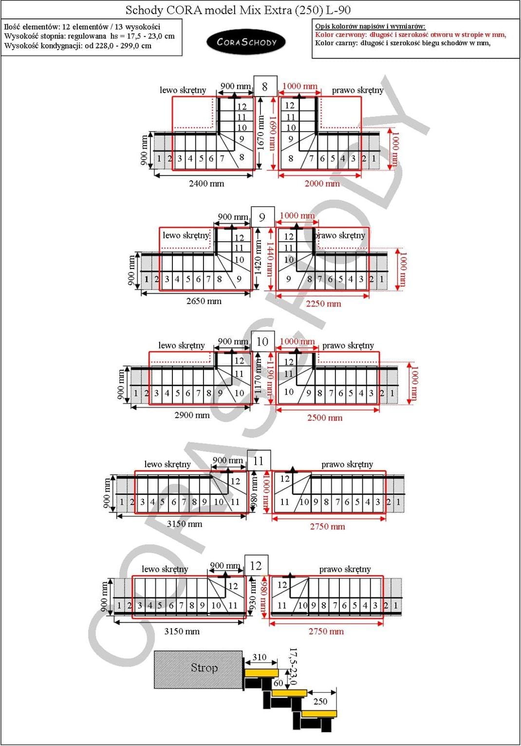 Die Treppe Mix Extra 03 P kann in eines von 24 vom Hersteller vorgestellten Systemen eingebaut werden. Die Treppe ist in ihrer ursprünglichen Form L-90 schwenkbar, links oder rechts, sowie in einer ungewöhnlichen geraden Ausführung – in diesem Fall sollte dem Formular ein entsprechender Hinweis hinzugefügt werden.