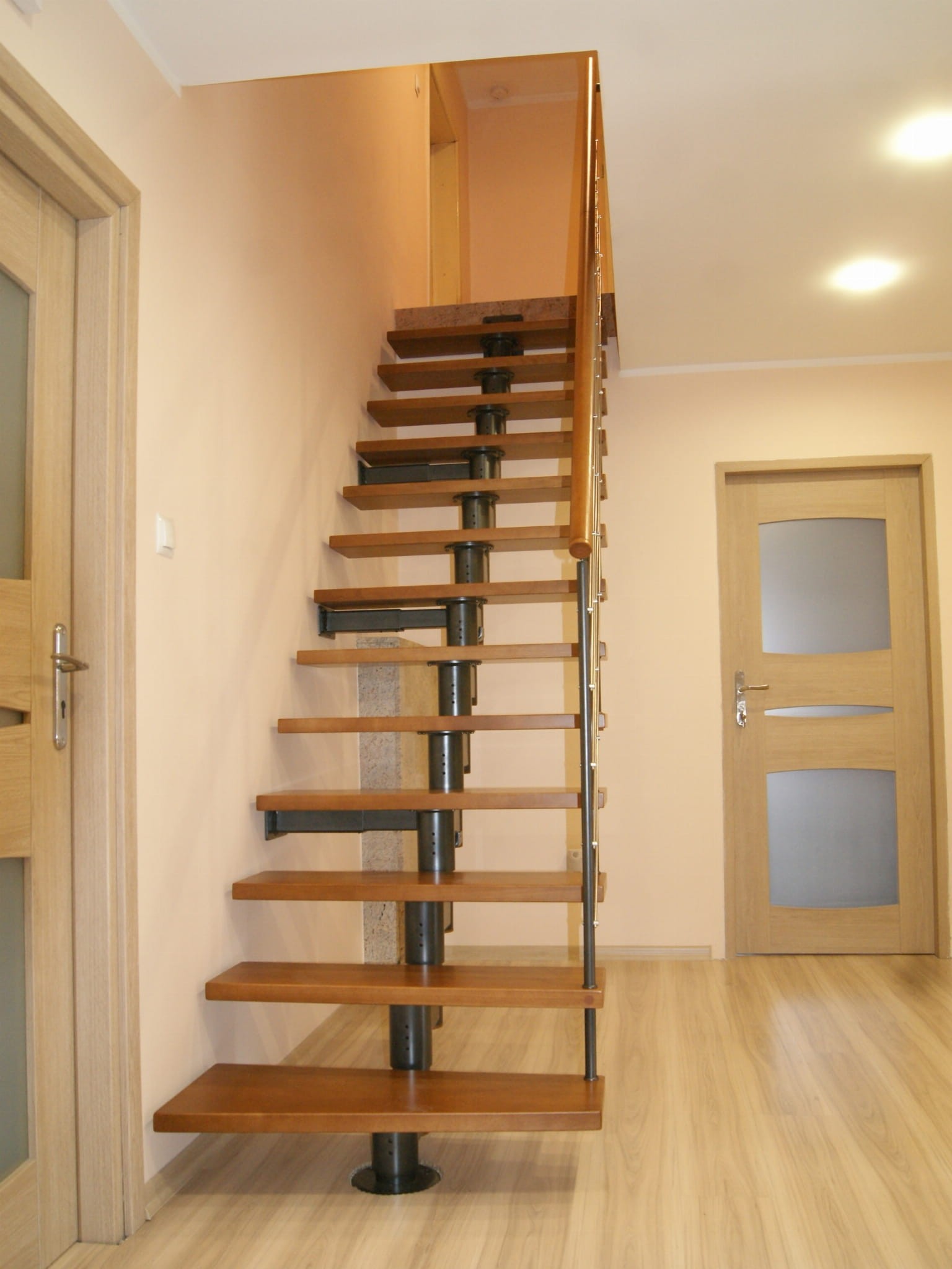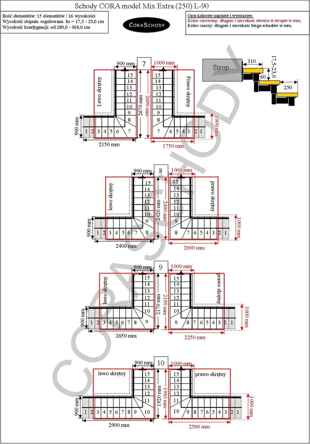 Dieses Modell zeichnet sich durch einen geraden Drehvorgang (P) aus, der nach rechts oder links läuft. Es ist möglich, mit einer Twist-Behandlung (L-90) zu bestellen, wenn Sie der Bestellung die entsprechenden Informationen hinzufügen. Dank der Anzahl der Elemente kann die Treppe in einer von 24 vom Hersteller vorgestellten Konfigurationen zusammengestellt werden.
