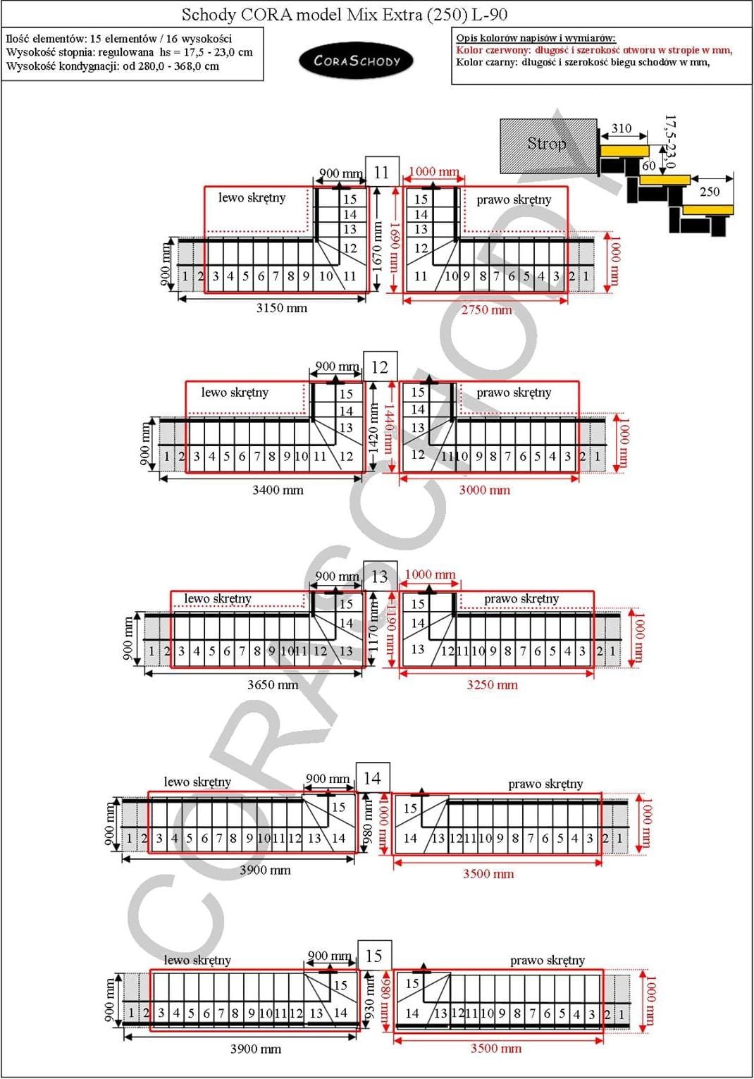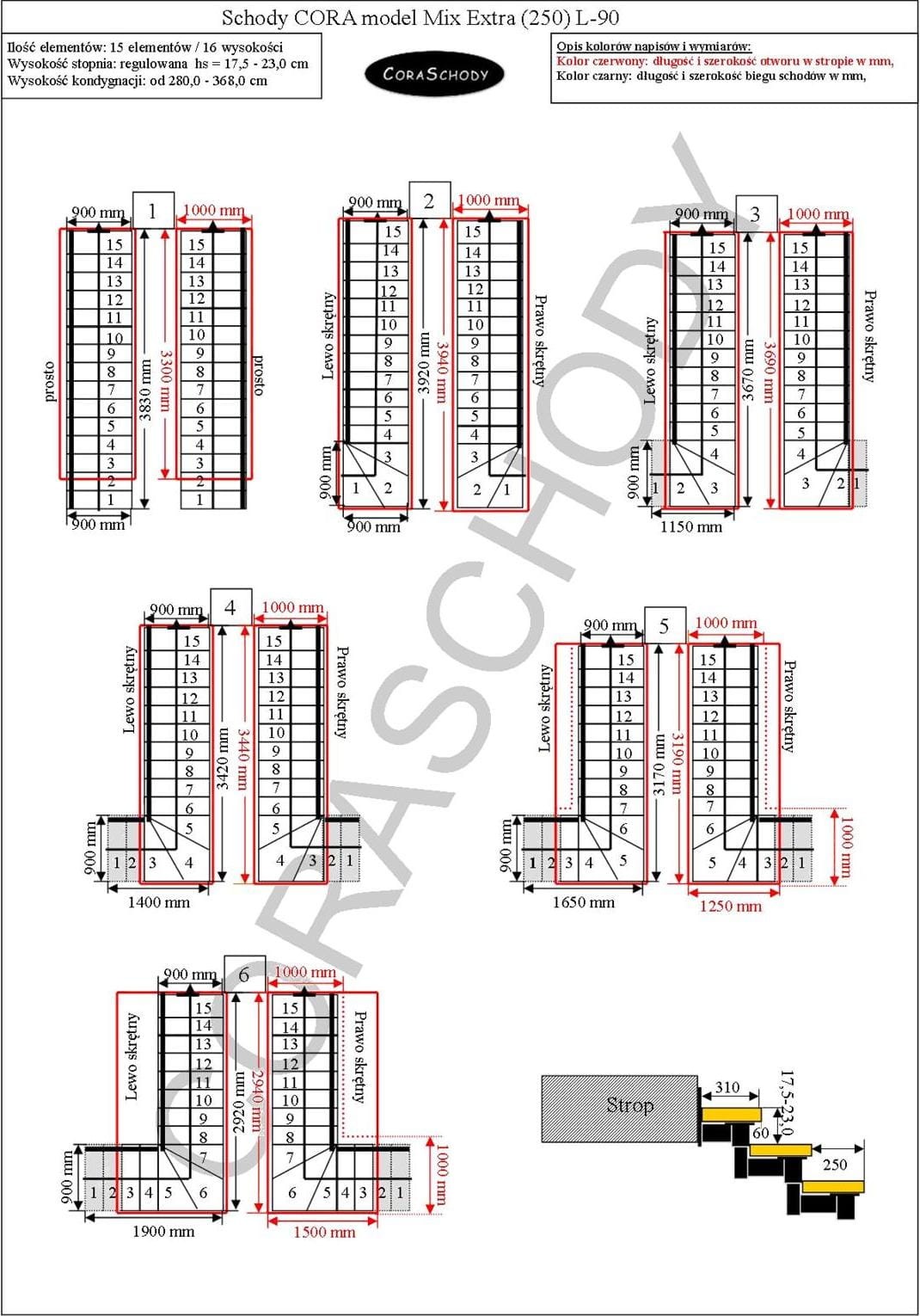 Die Treppe Mix Extra 03 P kann in eines von 30 vom Hersteller vorgestellten Systemen eingebaut werden. Die Treppe ist in ihrer ursprünglichen Form L-90 schwenkbar, links oder rechts, sowie in einer ungewöhnlichen geraden Ausführung – in diesem Fall sollte dem Formular ein entsprechender Hinweis hinzugefügt werden.