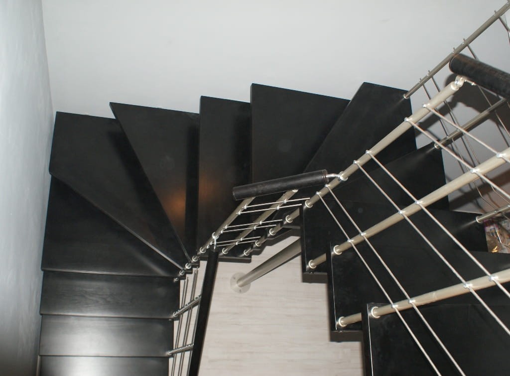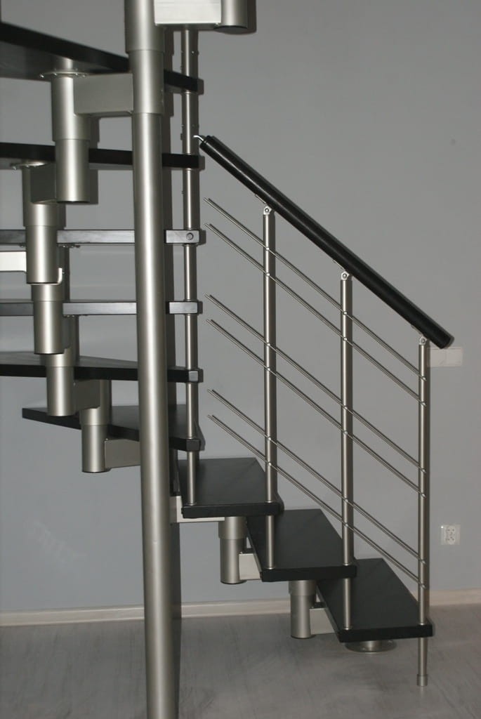Die Treppe sollte teilweise gegen die Wand laufen. Sie dürfen nicht weiter als 5 cm von der Wand entfernt sein. Es bezieht sich auf die Sicherheit bei der Benutzung der Treppe. Eine Verankerung an der Wand ist unerlässlich.