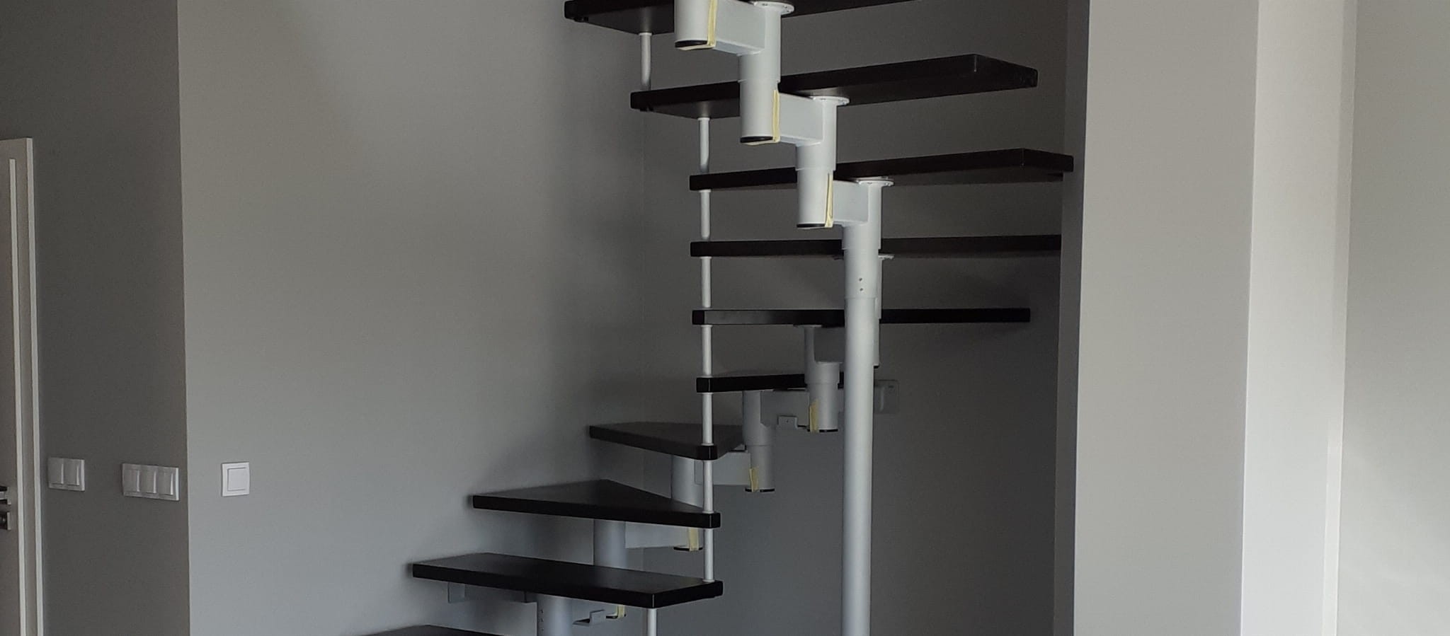Die Treppe sollte teilweise gegen die Wand laufen. Sie dürfen nicht weiter als 5 cm von der Wand entfernt sein. Es bezieht sich auf die Sicherheit bei der Benutzung der Treppe. Eine Verankerung an der Wand ist unerlässlich.