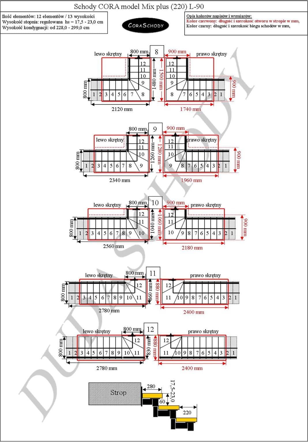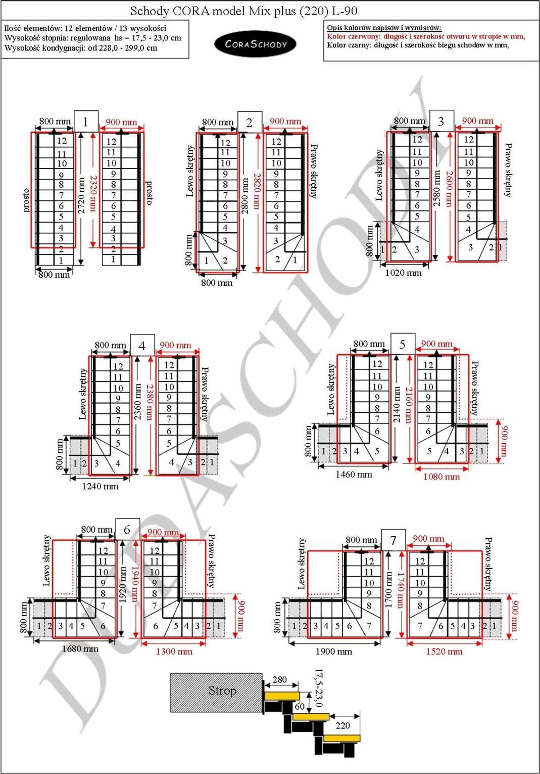 Mix Plus 00 Treppen können in einem der 24 vom Hersteller vorgestellten Systeme montiert werden. Die Treppenbehandlung erfolgt in der ursprünglichen Form eines Drehgelenks L-90, links oder rechts, sowie einer atypischen einfachen Behandlung – in diesem Fall sollte dem Formular ein entsprechender Vermerk hinzugefügt werden.