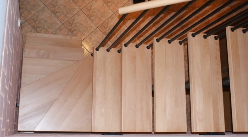Holzdekor: Im Preis der Treppe (ein Übersichtsfoto auf einem Buchen / Buche Naturlack) oder gebeizt in einer ausgewählten Farbe aus einer Holzfarbpalette
