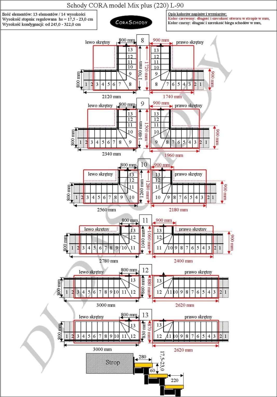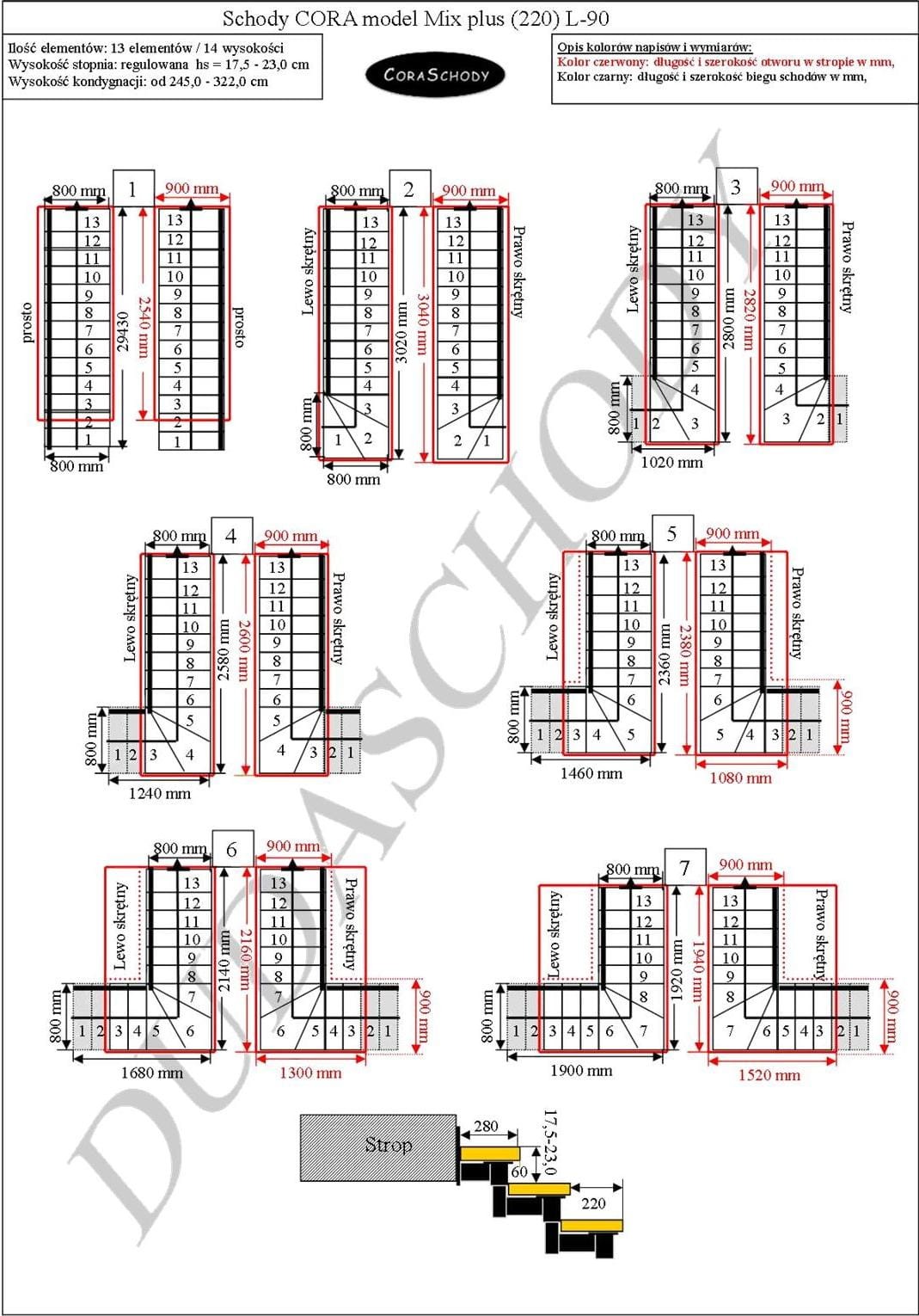 Mix Plus 00 Treppen können in einem der 24 vom Hersteller vorgestellten Systeme montiert werden. Die Treppenbehandlung erfolgt in der ursprünglichen Form eines Drehgelenks L-90, links oder rechts, sowie einer atypischen einfachen Behandlung – in diesem Fall sollte dem Formular ein entsprechender Vermerk hinzugefügt werden.