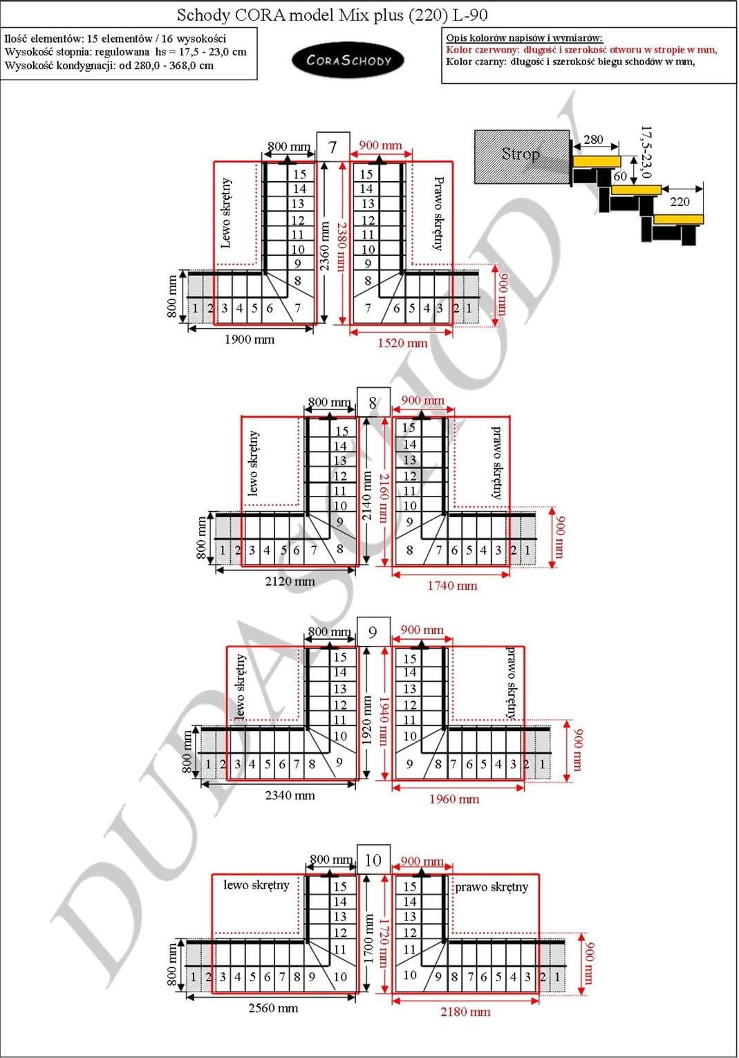 Mix Plus 00 Treppen können in einem der 24 vom Hersteller vorgestellten Systeme montiert werden. Die Treppenbehandlung erfolgt in der ursprünglichen Form eines Drehgelenks L-90, links oder rechts, sowie einer atypischen einfachen Behandlung – in diesem Fall sollte dem Formular ein entsprechender Vermerk hinzugefügt werden.