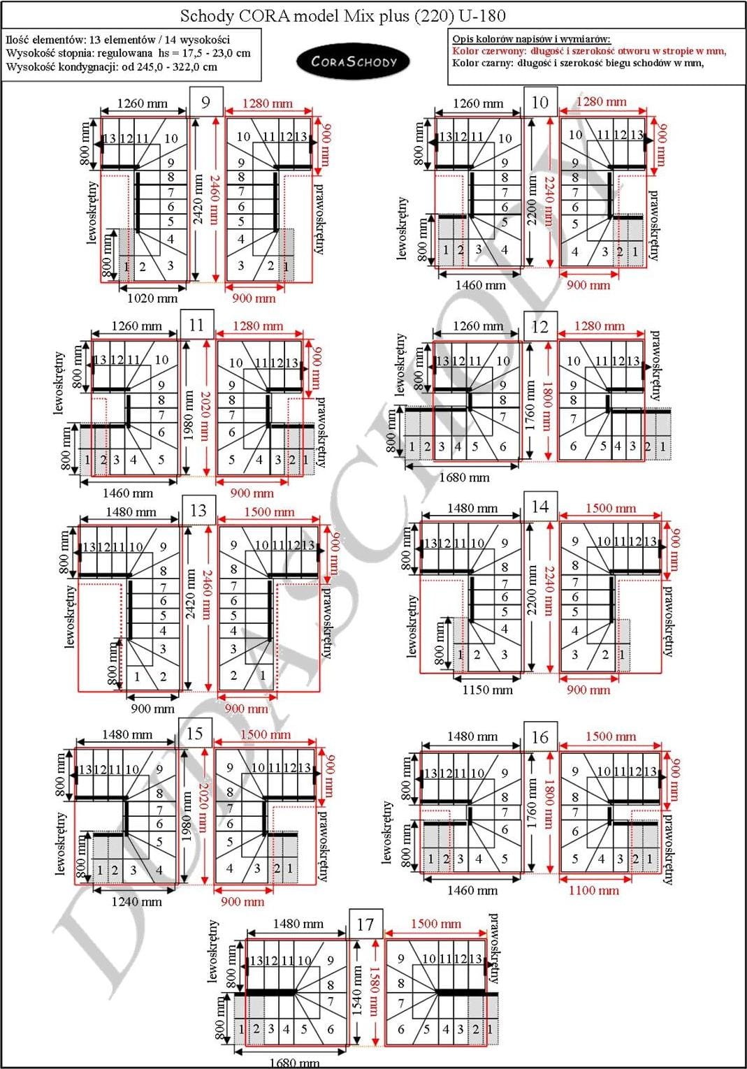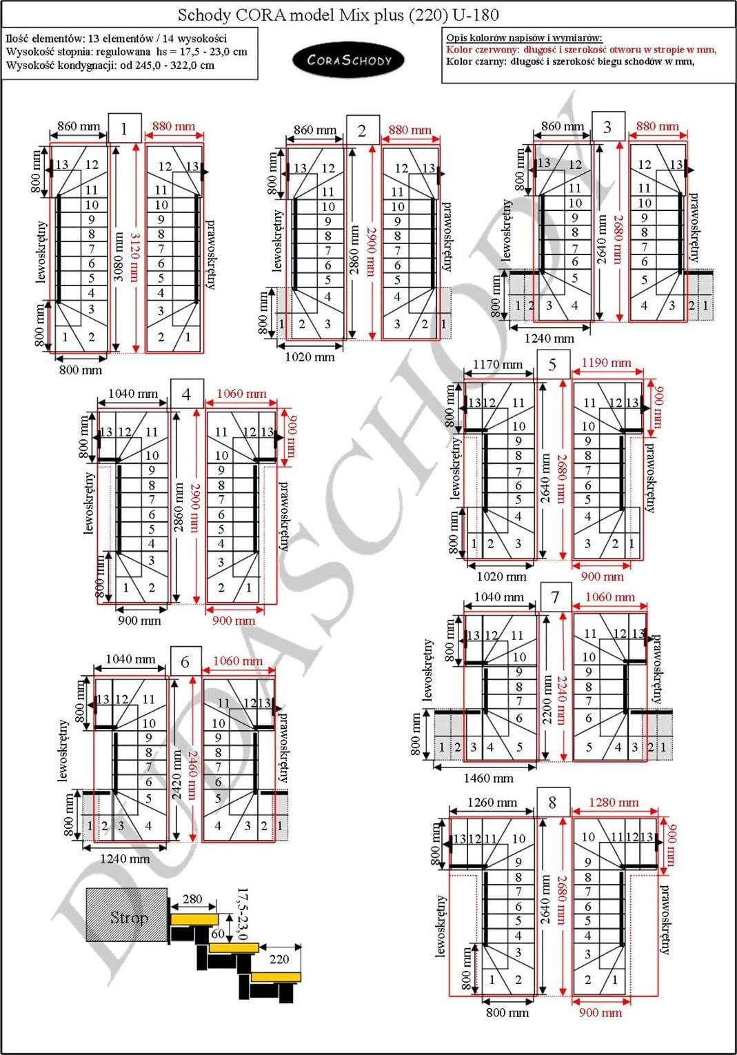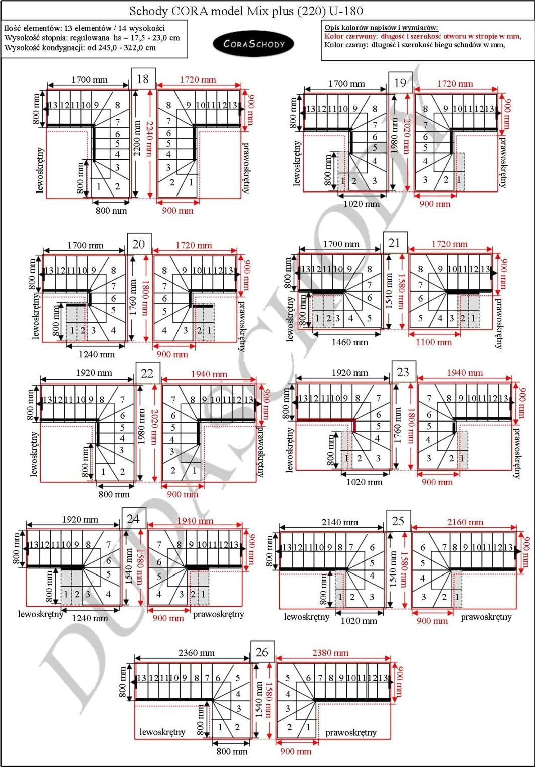 Mix Plus 00-Treppen können in einer von 52 Konfigurationen montiert werden, die vom Hersteller vollständig präsentiert werden. Dieses Modell hat eine originale U-180-Behandlung, sowohl rechts als auch links. Es ist möglich, eine einfache Behandlung zu bestellen, nachdem Sie dem Bestellformular eine Anmerkung hinzugefügt haben.