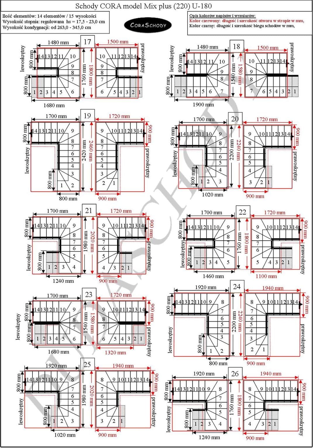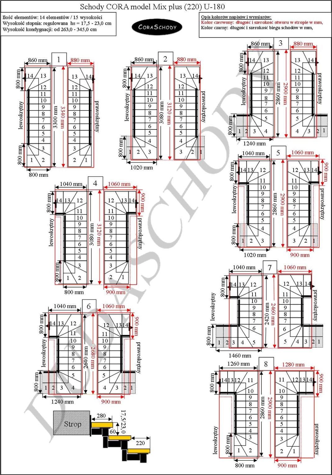 Mix Plus 00-Treppen können in einer von 66 Konfigurationen montiert werden, die vom Hersteller vollständig präsentiert werden. Dieses Modell hat eine originale U-180-Behandlung, sowohl rechts als auch links. Es ist möglich, eine einfache Behandlung zu bestellen, nachdem Sie dem Bestellformular eine Anmerkung hinzugefügt haben.